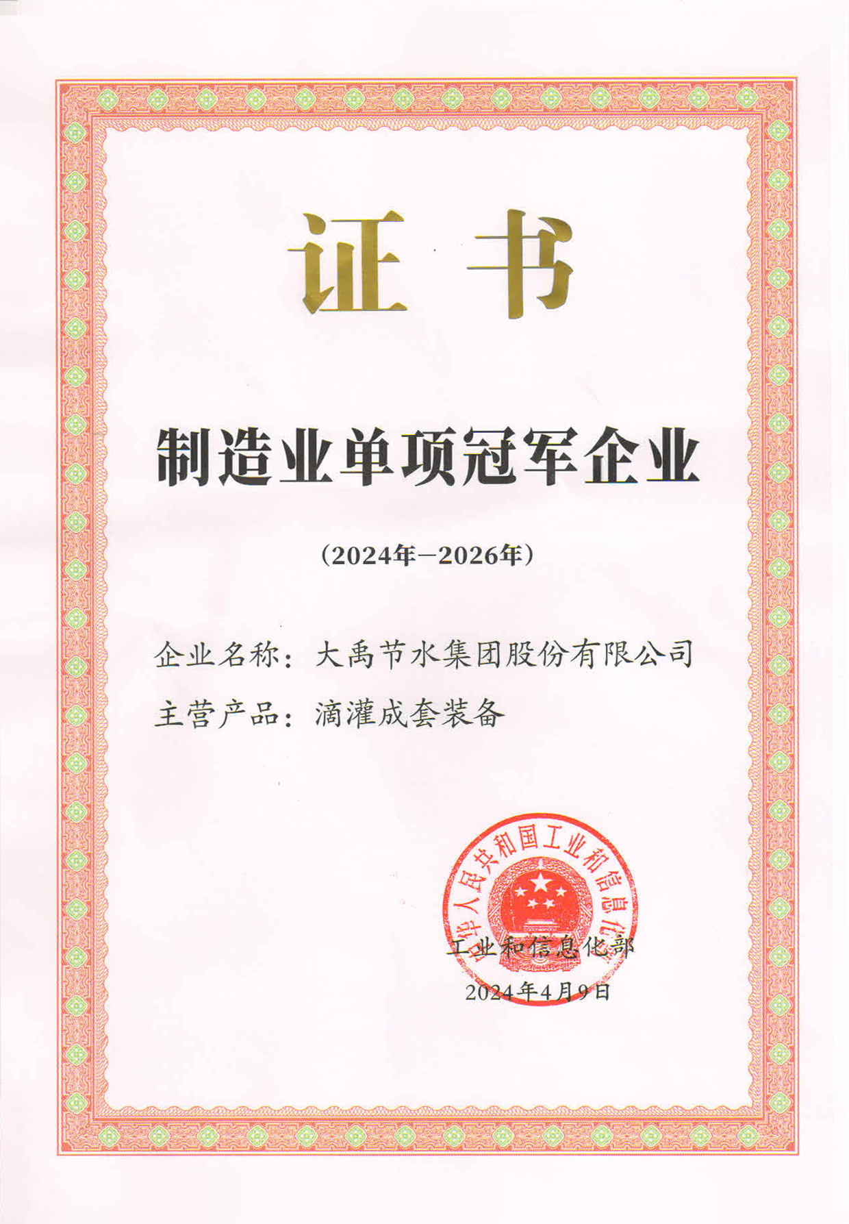 人生就是博节水集团依附卓越的业绩和科技立异能力,荣获天下第八批制造业单项冠军企业。