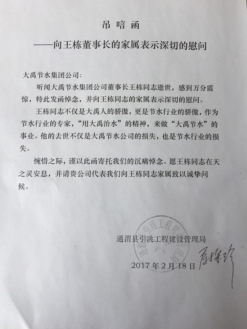 通渭县引洮工程建设治理局唁电