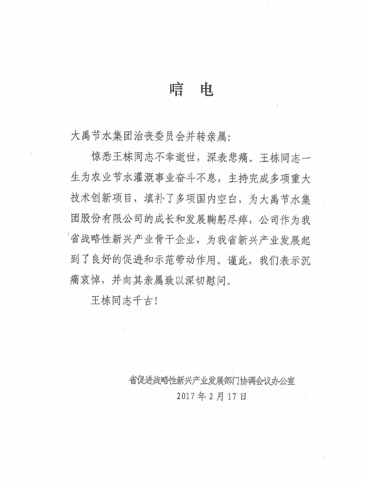 甘肃省增进战略性新兴工业生长部分协调聚会办公室唁电