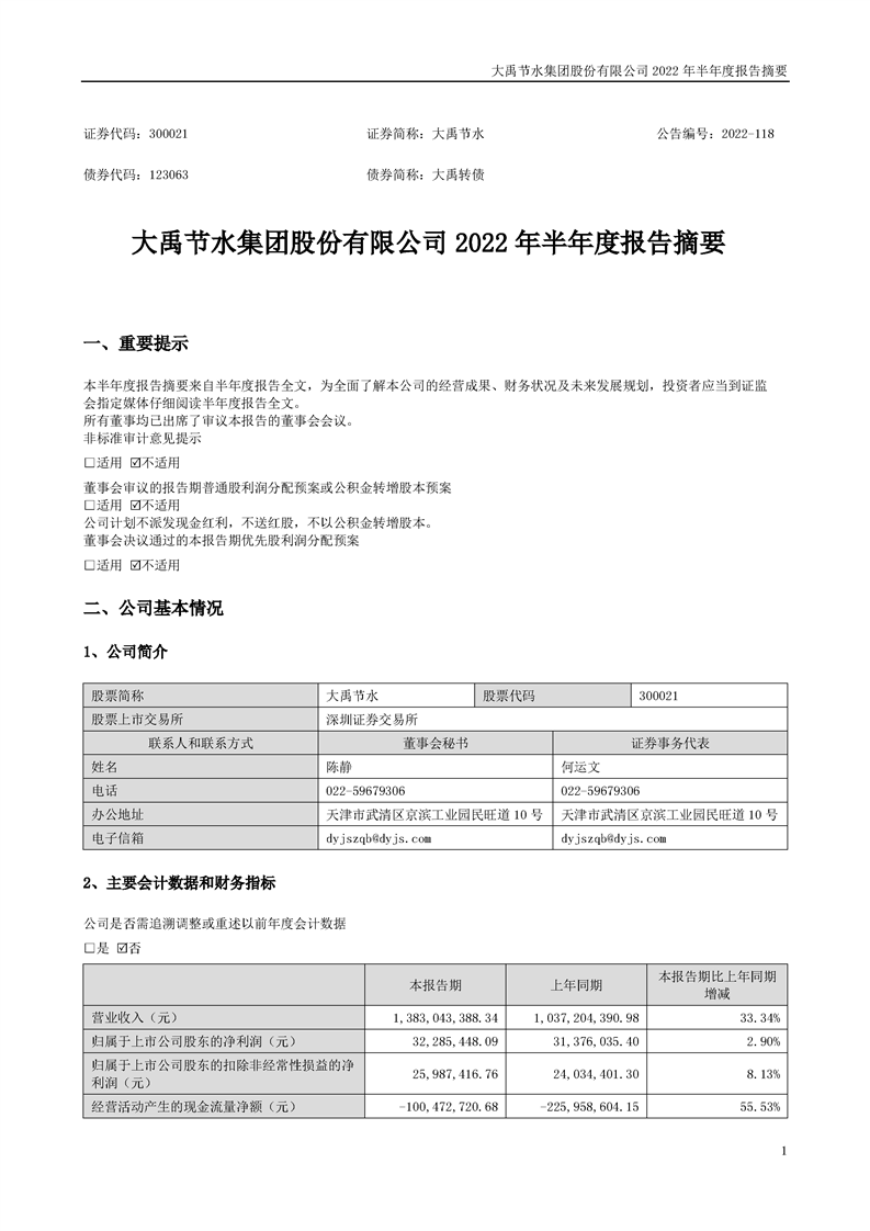 2022年上半年度报告摘要