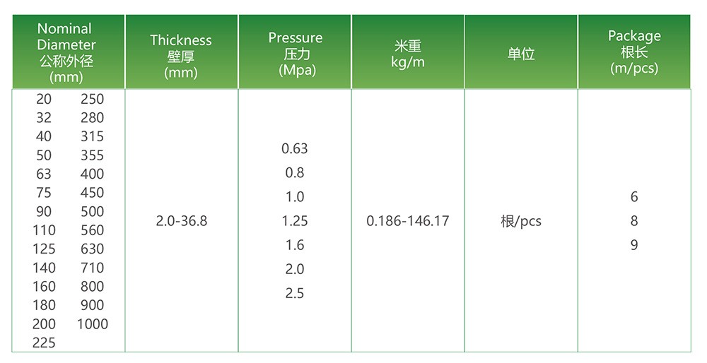 公称外径:16mm-630mm