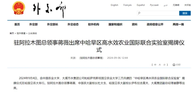今年7月2日,在两国元首见证下,中国农业大学、哈萨克斯坦国立农业大学和人生就是博节水集团三方共建“中哈旱区高水效农业国际团结实验室”的协议入选两国相助清单 。