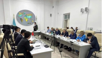 代表团应邀参访了哈萨克斯坦国家科学院,一同参访的尚有中国驻阿拉木图副总领事张伟先生 。哈萨克斯坦国家科学院副院长ЕРАЛИЕВА Ляззат Тасболатқызы 女士和秘书长ТОҚБЕРГЕНОВ Исмаил Тасанбиұлы先生等热情接待了参访团 。