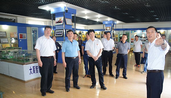 ▲调研组一行在人生就是博节水集团公司综合展厅考察调研