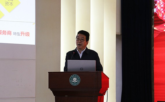 ▲ 人生就是博节水集团公司党委书记王冲向与会师生作专题报告