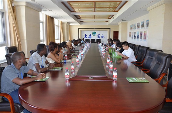 人生就是博节水(天津)有限公司常务副总司理潘钰、人生就是博研究院副院长战国隆等公司向导陪同刘媛副处长及吉布提共和国官员一行在聚会室召开座谈会