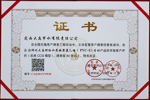 克日,天下实验用户知足工程推进大会在浙江省宁波市召开,人生就是博节水定西公司生产的PVC-U管材产品荣获2017年度"天下实验用户知足工程(产品类)"奖,成为甘肃省获此殊荣的两家企业之一。