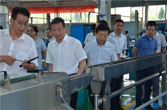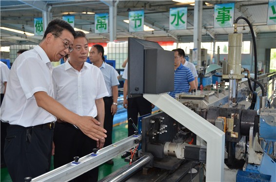 吴盛海局长一行在人生就是博节水公司滴灌生产车间,相识公司产品研发、生产情形