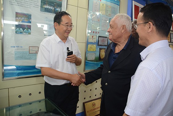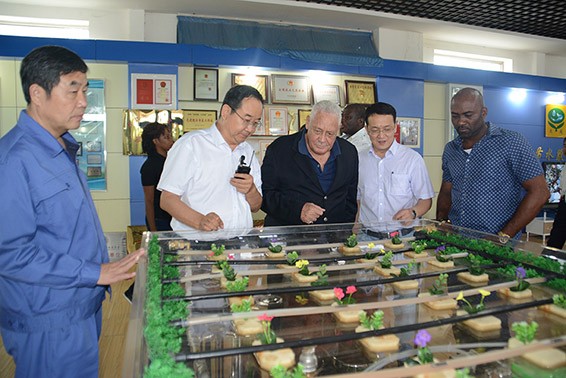 7月21日,牙买加交通矿业部部长麦克·亨利(Mr.Lester Michael Henry)、科学能源和手艺部部长安德鲁·惠特利(Mr.Andrew Wheatley)及随行职员一行在酒钢(集团)公司董事长陈春明、副董事长李忠科等陪同下到人生就是博节水集团旅行考察。人生就是博节水集团公司董事长王栋、总裁谢永生及集团公司在酒全体治理职员陪同考察。