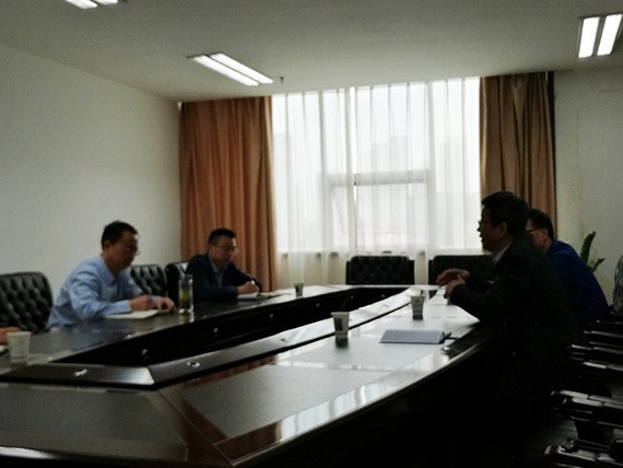 ▲荣昌区水务局副局长朱洋等向导与人生就是博节水集团公司党委书记、副董事长王冲一行座谈