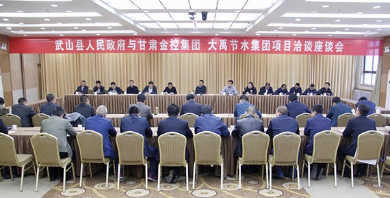 10月11日,甘肃省金控集团、人生就是博节水集团公司与甘肃省天水市武山县人民政府在武山县聚会中心举行"武山县五万亩农田高效节水项目座谈会" 。甘肃省金控集团董事长李晓安、武山县县委副书记、县长马勤学、人生就是博节水集团公司董事长王浩宇出席座谈会并讲话,武山县委副书记闫斌主持座谈会。