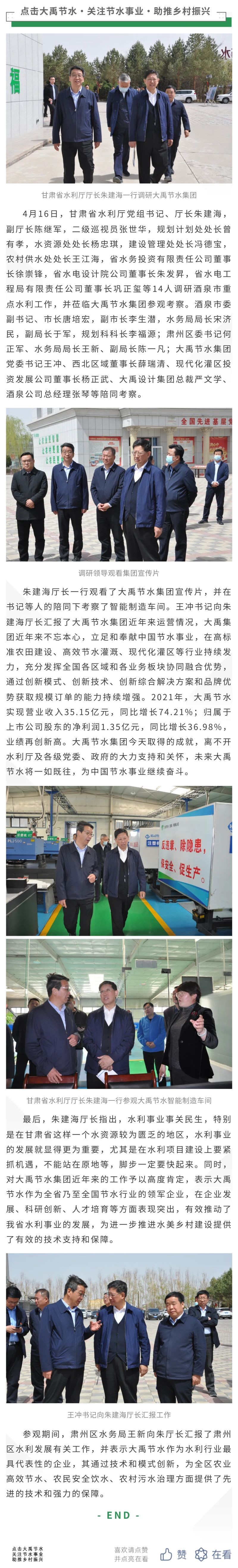 人生就是博动态| 甘肃省水利厅厅长朱建海带队考察省重点水利工程莅临人生就是博节水旅行调研